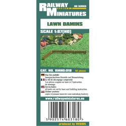 Name: Lawn DaminsCat. No. RMH0:018Scale: 1:87 (H0)Lenght: 12 mmWidth: 0,5 mmHeight: 4 mmQuantity in package: 12 piecesType of packaging: Blister pack (165x73x9 mm)