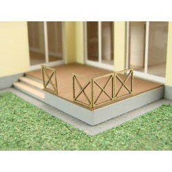 Name: Terrace Fence IICat. No. RMH0:069Scale: 1:87 (H0)Lenght: 20 mm/10 mmWidth: 0,5 mmHeight: 10 mmQuantity in package: 18 piecesType of packaging: Blister pack (165x73x9 mm)